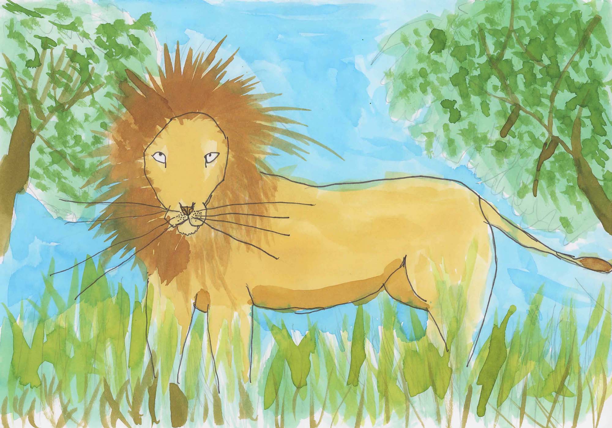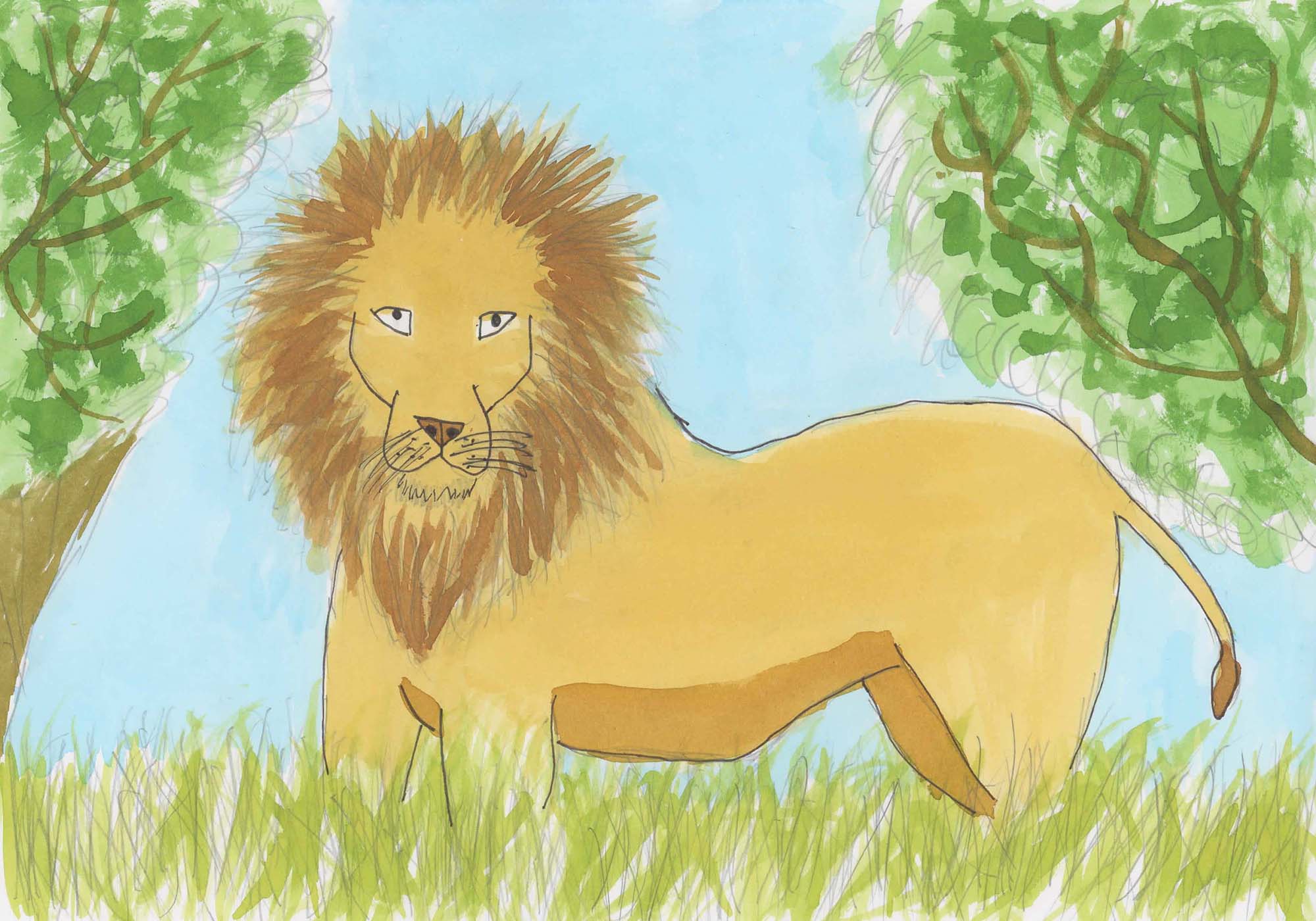 Le lion, du crayon à la couleur :